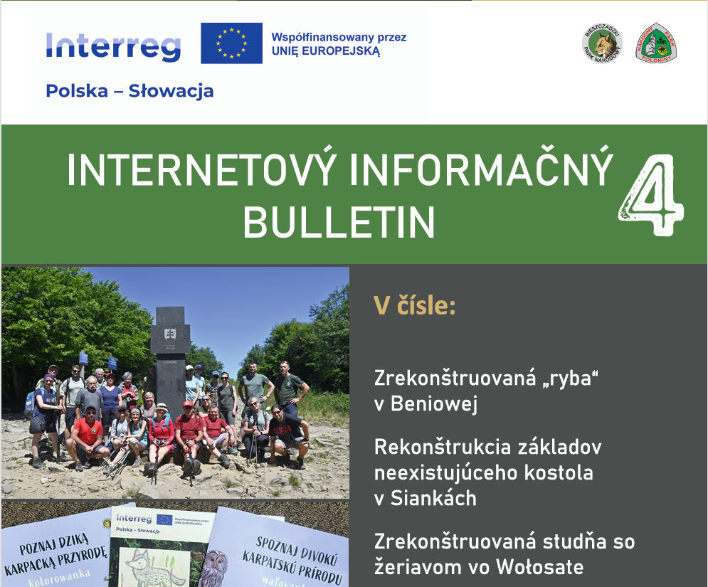 V spolupráci s našimi partnermi z Bieščadského národného parku vznikol v rámci projektu „Prírodné a kultúrne poklady Východných Karpát – poznaj, maj rád a chráň!“ nový internetový informačný bulletin, ktorý vás zavedie do sveta prírody a kultúry poľsko-slovenského pohraničia.