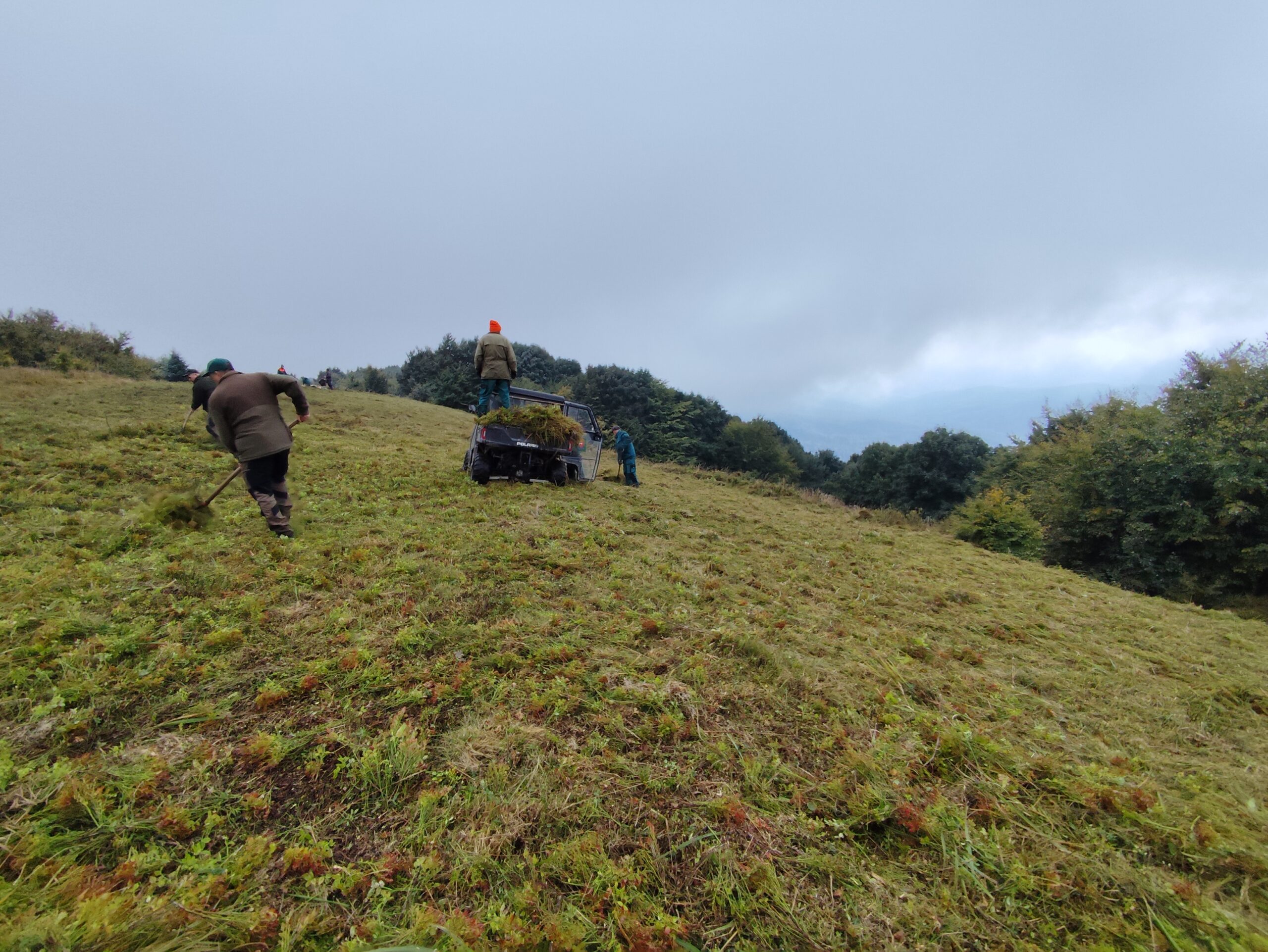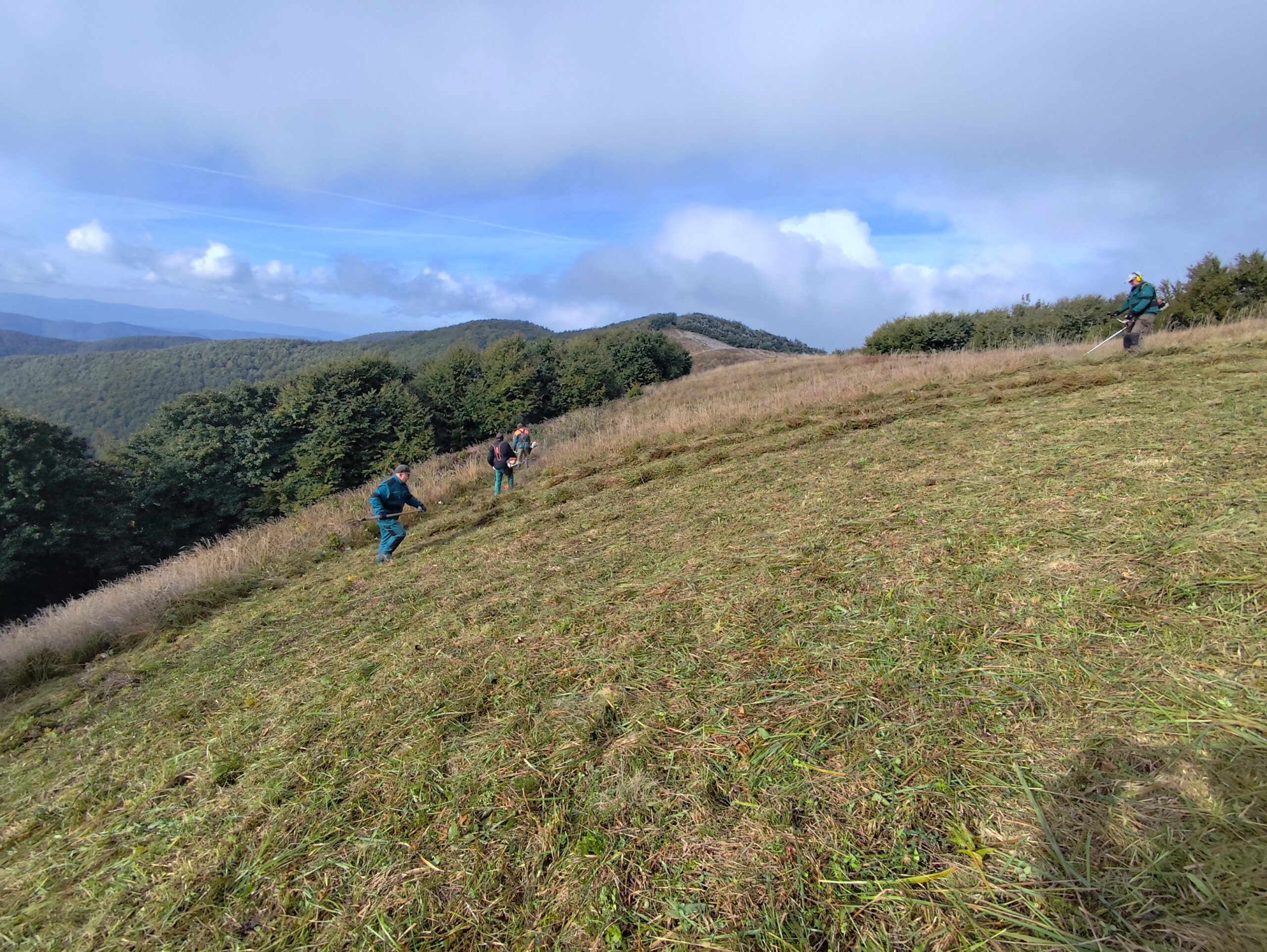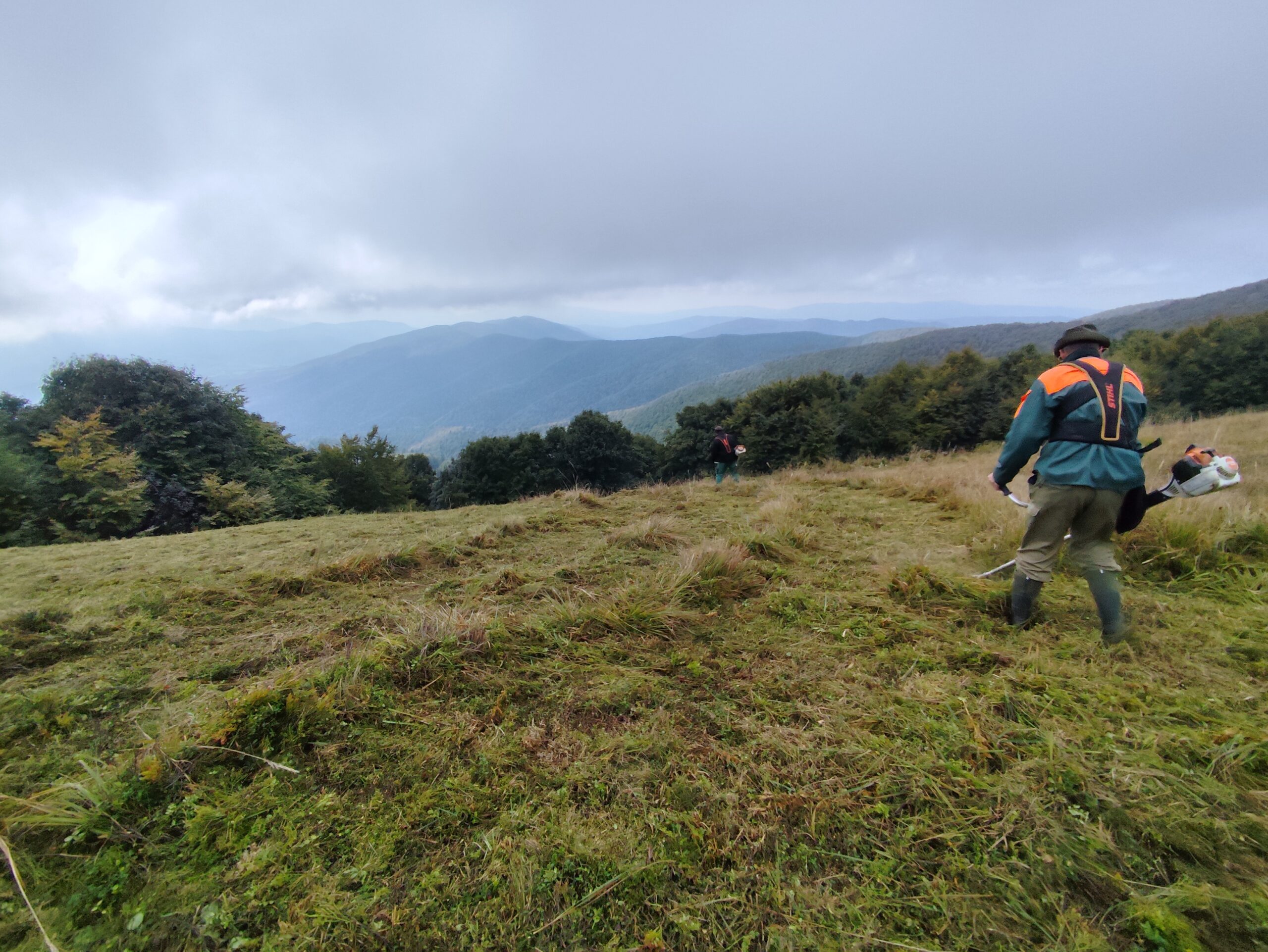 Počas tohto roka sme sa preto rozhodli priložiť ruku k dielu. Po asi hodinovom výstupe na hrebene hôr sme vykasali rukávy a pustili sa do práce. Výsledok? Vykosených približne 20 hektárov poloninských lúk v oblastiach Stužice, Riabej skaly a masívu Stinskej. No to najdôležitejšie nie je len samotná práca – ale jej význam. Každý pokosený meter predstavuje malý krok k zachovaniu domova pre množstvo rastlinných druhov typických pre Východné Karpaty. Popri vzácnych druhoch, ako sú iskerník karpatský, klinček nakopený, zvonček jedľový, fialka dácka, ale aj hadomor ružový či mliečnik Sojákov, tu rozkvitajú aj ďalšie jedinečné rastliny, ktoré dotvárajú pestrú mozaiku poloninských lúk.
