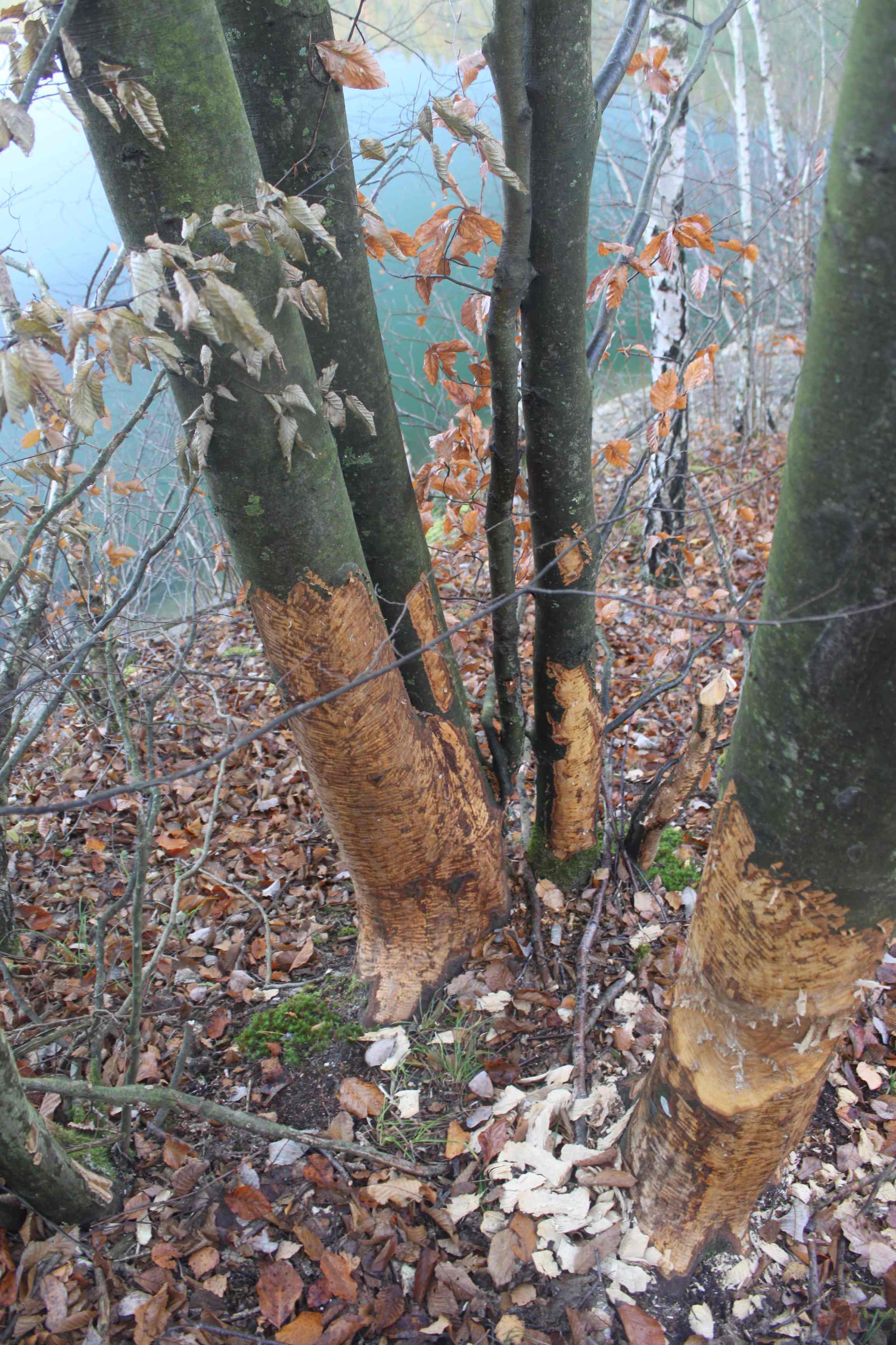 Už čoskoro padnú aj tieto stromy. Na „pílenie“ drevín využíva bobor 4 silné trvale dorastajúce rezáky, ktoré majú sýto oranžové sfarbenie.