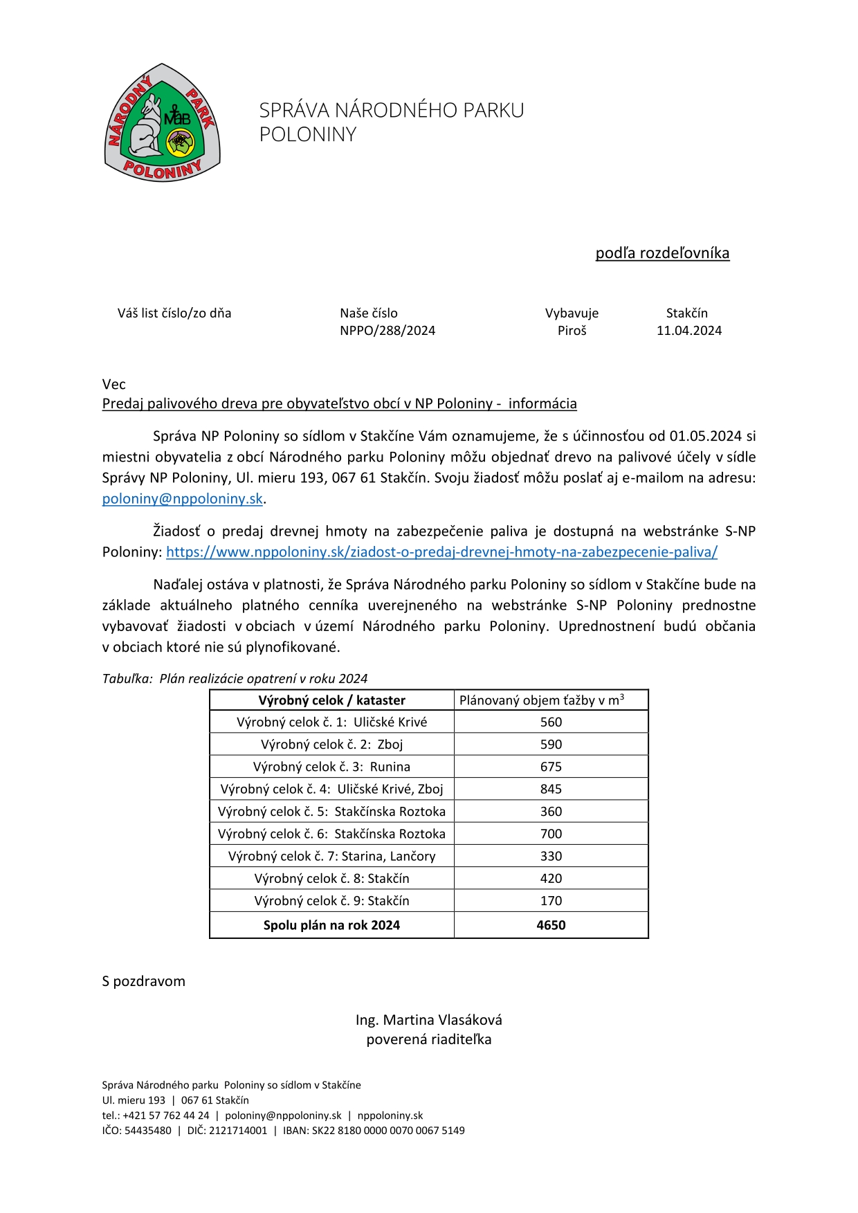 Predaj palivového dreva pre obyvateľstvo obcí v NP Poloniny – informácia s účinnosťou od 01.05.2024 (PDF; 320 kB)
