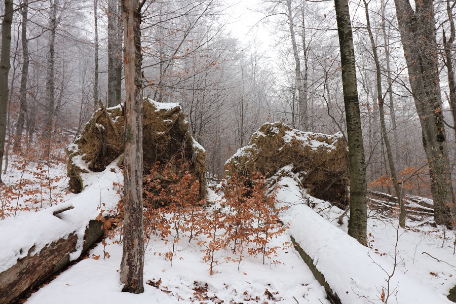 Bukový prales v NPR Havešová v zime.