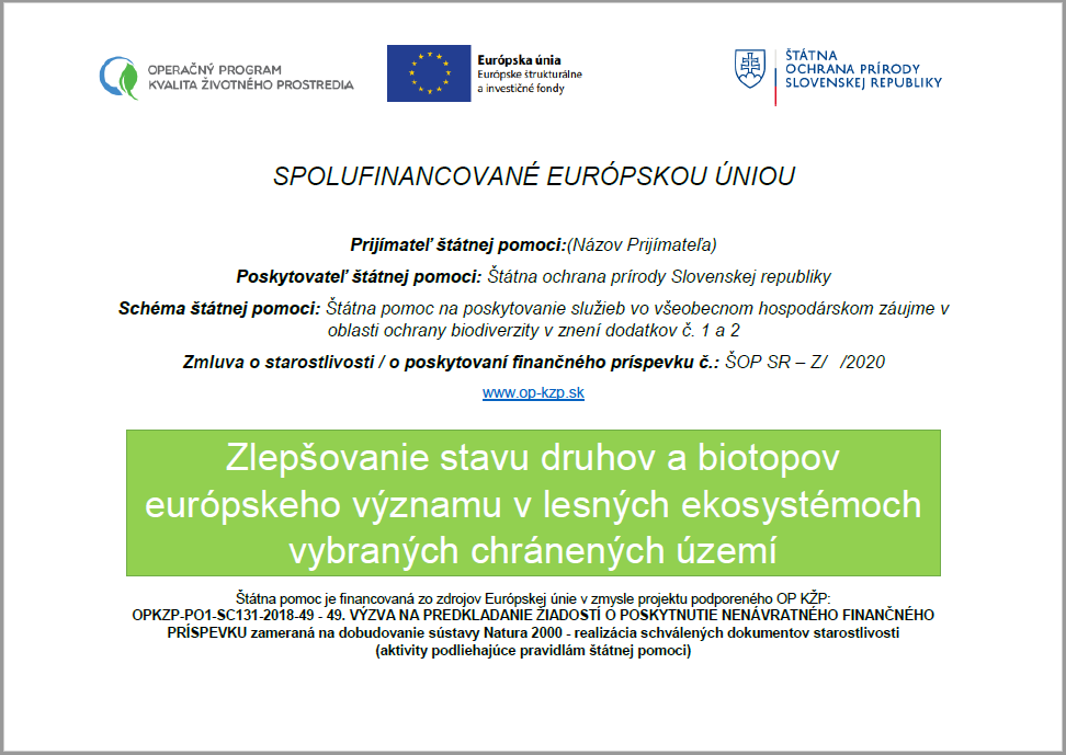 Chránené územia, ktoré sa môžu do tejto výzvy OPKŽP zapojiť musia mať schválené dokumenty starostlivosti. V území Národného parku Poloniny sa plánované opatrenia realizujú v súlade s Programom starostlivosti o Národný park Poloniny na roky 2017 – 2026, ktorý je takýmto požadovaným dokumentom starostlivosti. Jedná sa o opatrenie v oblasti ochrany biodiverzity, ktorého cieľom je zlepšovanie stavu druhov a biotopov európskeho významu v lesných ekosystémoch vybraných chránených území.